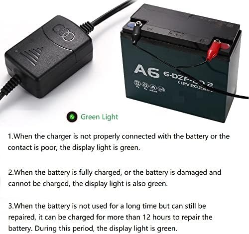 Notice: Only for 12V Sealed Lead Acid (SLA) Battery!!! Do not use this charger on other battery.