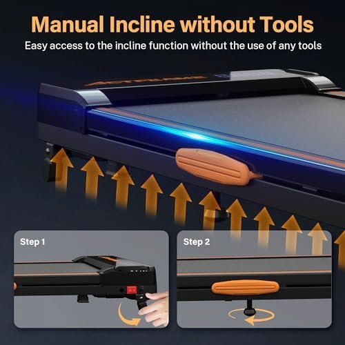 Walking Pad Treadmill with Incline: Actflame treadmill’s incline function is easy to use without any tool. The 5% incline design more realistically simulates climbing scenarios than other regular treadmill, burning more calories. With height adjustment knob in the middle, You can turn it to the left to get more stable exercise experience.