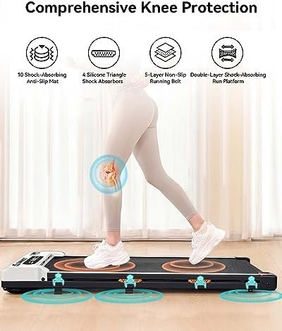 【Dual-layer Belt & 14 Shock Points】 – The walking pad treadmill offers a spacious running area of 40″ x 16″, allowing for unrestricted movement. It is equipped with 5 layers of anti-slip belts, 10 shock absorbers, and 4 rubber cushions. Not only does it provide a comfortable exercise experience, but it also effectively reduces joint impact and protects your knees