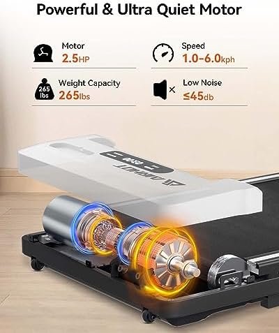 【2.5HP Powerful Silent Motor】 – The AIRHOT walking pad, with its 2.5 horsepower motor, can support a weight of up to 265 pounds. It operates at a noise level below 45 decibels, allowing you to use it in an office or at home without worrying about disturbing others. Enjoy a quiet and comfortable exercise experience while using the under desk treadmill
