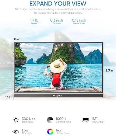 ARZOPA Portable Monitor, 15.6” 1080P FHD Laptop Monitor USB C HDMI Computer