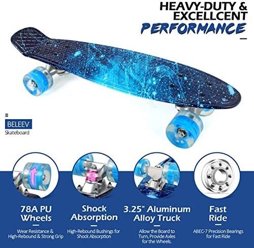 BELEEV Skateboard Complete Cruiser Mini Skateboard for Kids Teens Adults & Beginners