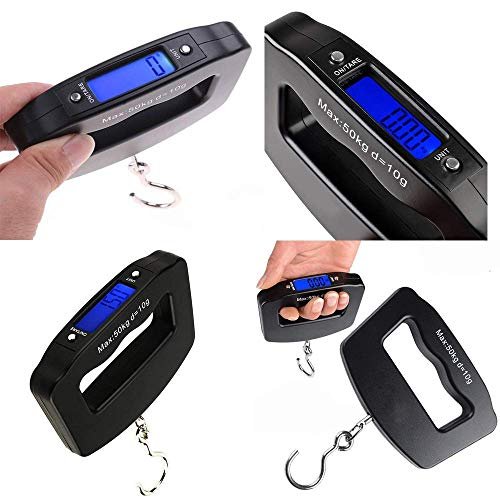 110lb/50kg capacity digital luggage scale precisely weighs suitcases, bags and backpacks.This simple, easy-to-use fishing scale has a sturdy hook for an extremely accurate measurement of different types of bags.Great for travel and fishing.