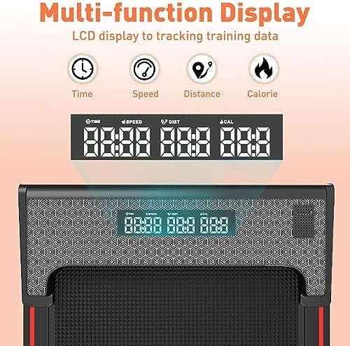 [1-6KM/H Speed Levels] Available in 1-6KM/H Speed levels. Whisper quiet, 5-layers anti-slip running belt with shock absorption, no heavy lifting for use & away of storage. this walking treadmill allow you to select different speed base on your physical condition and exercise based. Easy-to-use exercise walking machine help to improve your cardiovascular fitness, boost your health, and burn fat.