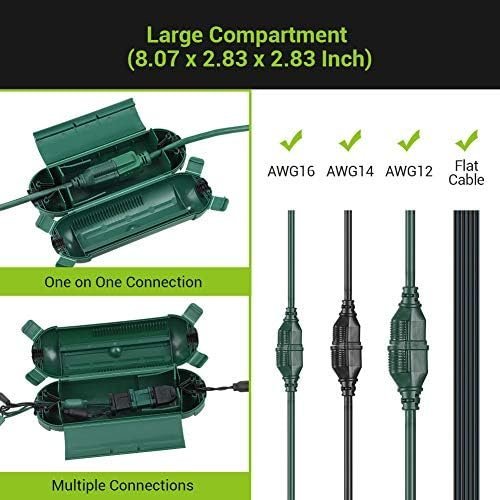 - AMPLE & AJUSTABLE COMPARTMENT: Large housing holds both multiple connections and one on one connection; compatible with AWG 12/14/16 extension cord and flat cable; slide to adjust the position of the limiter for different lengths of connections