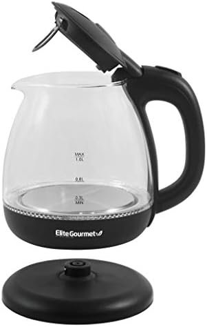 Elite Gourmet EKT1001B Electric BPA-Free Glass Kettle, Cordless 360° Base