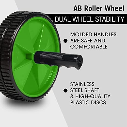 DUAL-WHEEL DESIGN FOR INCREASED STABILITY: Dual wheels, stainless steel shaft and high-quality plastic discs make the ab roller more stable and durable, the stripes on the surface of tires will prevent the ab wheel from slipping and sliding during your work out.