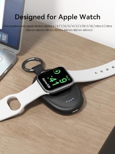- Charge On the Go: This wireless charger for Apple Watch boasts a compact and portable design, making it effortless to store and convenient to carry with you wherever you go. Additionally, the inclusion of a keyring allows for easy attachment to your bag or backpack. Perfect for using at home, office, business trips and travels. Package Include: 1* Portable Charger for Apple Watch; 1* USB-C to USB-A Charging Cable; 1* User Manual.