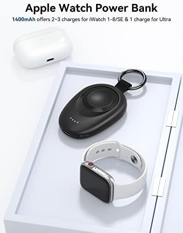 - Portable Charger for Apple Watch: This magnetic wireless charger for Apple Watch equipped with a powerful 1400mAh battery that can provide up to 2-3 full charges for iWatch 1-9/SE and one charge for Ultra/Ultra 2. This portable charger for Apple Watch also features four LED indicators that make it easy to check the battery level at a glance (0–25%–50%–75%–100%).