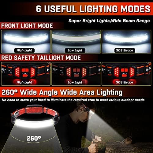 ☀【6 LIGHT MODE FRONT LIGHT AND TAILLIGHT INDIVIDUALLY CONTROLLED】 – The difference between our headlamp and others is that our headlamp has been upgraded, the front light and taillight can be controlled separately,two buttons.The headlamp has 6 lighting modes,adjustable.3 front light modes + 3 tail red light modes,allowing you to travel safely at night.Meanwhile, the headlight also with charging indicator,which can prompt charging when the headlight is almost out of power.