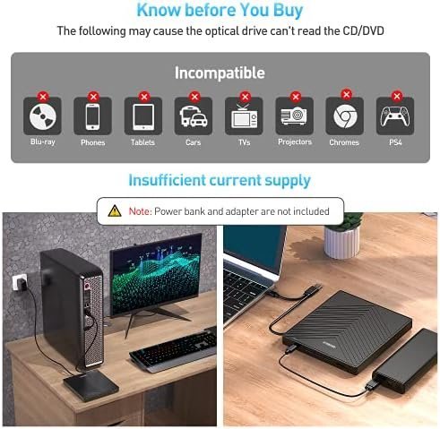 Hiarkio ORIGBELIE External CD DVD Drive, Ultra Slim CD Burner USB 3.0 with 4 USB