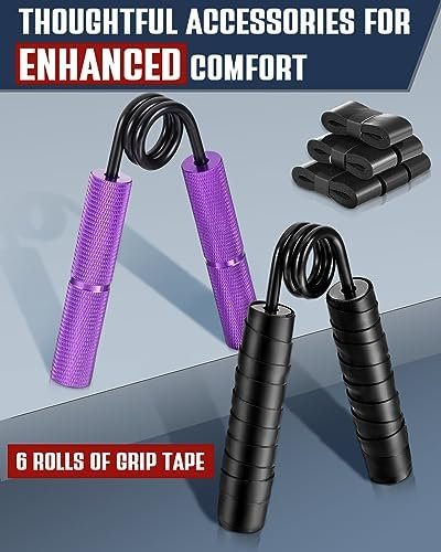 【Double Non-Slip】: This gripper handle is engraved with a pattern to increase the friction between your hand and the handle, and Hozzen Grip Strength Trainer Set comes with 6 rolls of grip tape to add double non-slip and anti-corrosion protection to enhance the grip feel, provide you with optimal comfort.