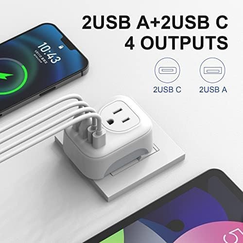 - Power Plug USB C Fast Charge : The European plug adapter’s total output of 4 USB ports is 5V/3.4A. Built-in smart technology can auto-detect charged devices. USB A ports can charge up to 2.4A, and the USB C port can charge up to 3A, allowing you to charge 6 devices simultaneously. Ideal for cell phones, tablets, power banks, etc.