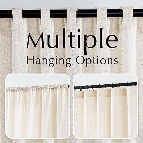 jinchan Linen Beige Curtains 84 Inches Long for Living Room Farmhouse Rod Pocket