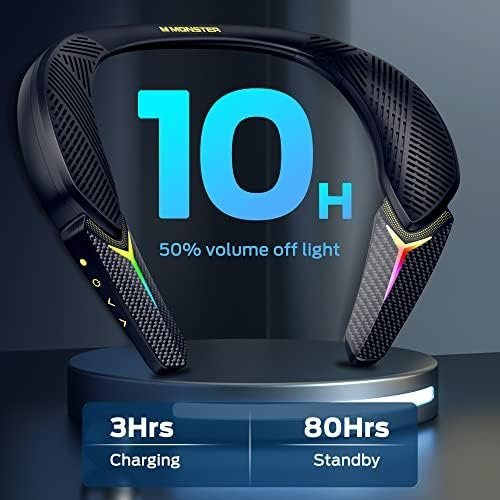 - Immersive Audio Experience The Neckband Bluetooth speaker built-in 3W speaker system and 2 bass diaphragms, creating a truly unique and pure Monster sound experience.Experience a full-range speaker on both sides of the neck speaker surrounding your ears to produce 3D theater sound quality. Immerse yourself in the 3D private cinema.