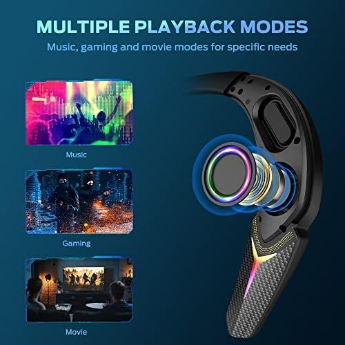 - Multiple Playback Modes Built-in 3 modes: Game, movie, and music. <60ms low latency and the accuracy of acoustic positioning improve the sensitivity of the speaker, allowing to hear subtle sounds such as footsteps, giving players the advantage in the first-person shooter. Movie mode minimizes audio lag in shows and movies, creating a sense of reality and intensity. For music mode, just enjoy the content with incredible vibrancy, drama, and connection to take the experience to the next level.