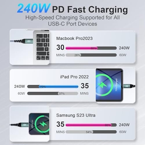 - Fast Charging Cord This usb c charger cable supports most of the fast charging protocols on the market. It can charge all USB-C phones, tablets, laptops, even the latest MacBook Pro/Air, iPad Pro at maximum speed.