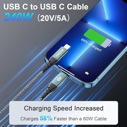Naoeleii USB C to USB C Cable,100W Usbc to Usbc C Charger Cable Fast Charging