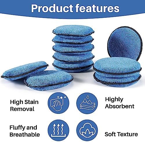【Wide Application】 Microfiber applicator pad is suitable for automobile painting, interior dashboards, bumpers, leather sofas, furniture, floors, tiles, electroplating parts, etc. Tips: Please put car wax applicator pad in a ventilated place when not in use, it will harden and dry out and keep it clean. If you need to use it again, just soak the sponge.
