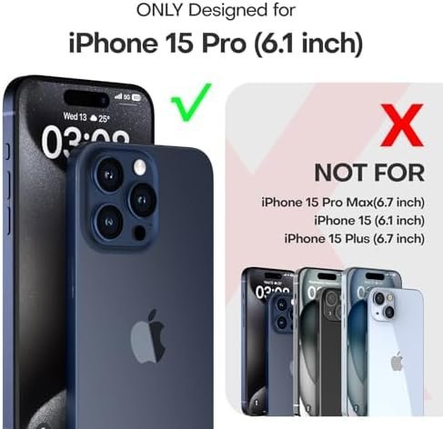 - 5-in-1 360° Full Protection This Shockproof for iPhone 15 Pro Case with 2 Pcs High Quality 9H Tempered Glass can protect your phone screen from scratch and broken but ultra-thin, comfortable and sensitive touch make you feel as nothing on screen. Provide 2 Pcs Camera Lens Protector that can protect the camera 100% and will not affect the quality of the photo.