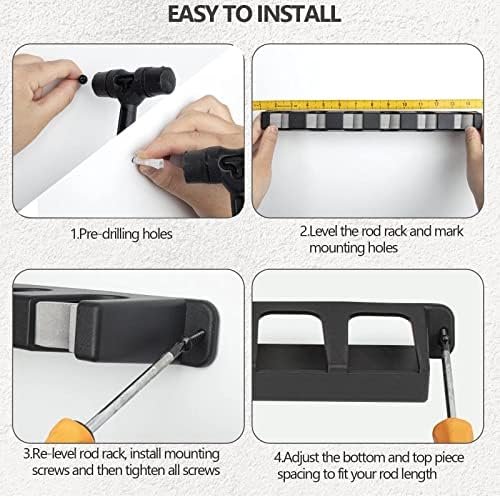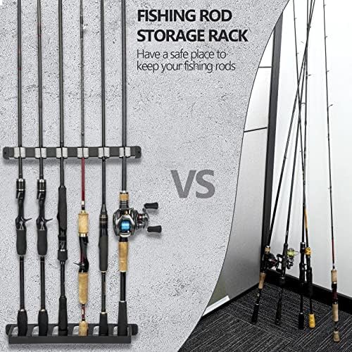 STORE 6/8 RODS: The spacing of the wall mount fishing rod can be adjusted to fit your rod length. Allow the reels to be staggered at different heights, which can store up to 6/8 rods and reduce reel collisions. Use this rod holder to protect your fishing rods from tangling lines. The vertical rod holder base grip keeps the rod away from the ground, which can prevent the rod corrosion.