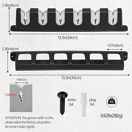 WIDE APPLICATION: This is the perfect fishing pole holder for your garage, shed, boat and storage areas. Suitable for most freshwater rods including spinning, baitcasting, fly rods, ice rods and more! The fishing rod holder with 4/8 expansion screws easy to install horizontally or vertically. ATTENTION: The groove width is 0.4in, please adjust the fishing rod position till rod be holden tightly.