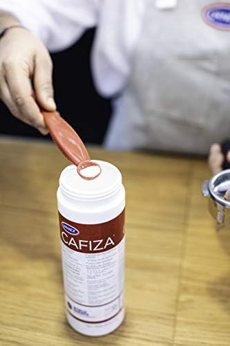 Cafiza coffee machine descaler. This all natural powder is 100-Percent food safe. May be used used to back-flush commercial espresso machines, as a soak for your coffee handles and baskets, or as an espresso/coffee machine cleaner. 20-Ounce container.