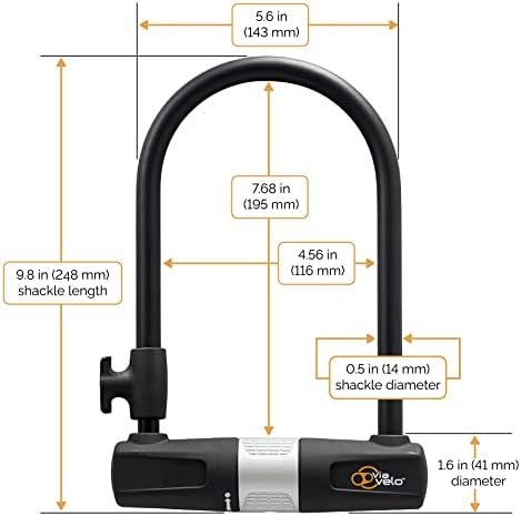 Via Velo Bike Lock Heavy Duty Bicycle U-Lock,14mm Shackle and 10mm x1.8m Cable
