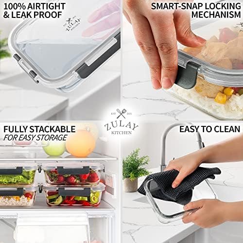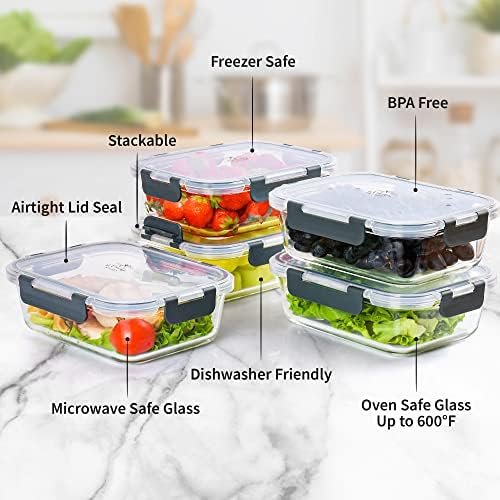 Zulay Kitchen 5 Pack Leak-Proof Glass Food Storage Containers – 36 oz Thick